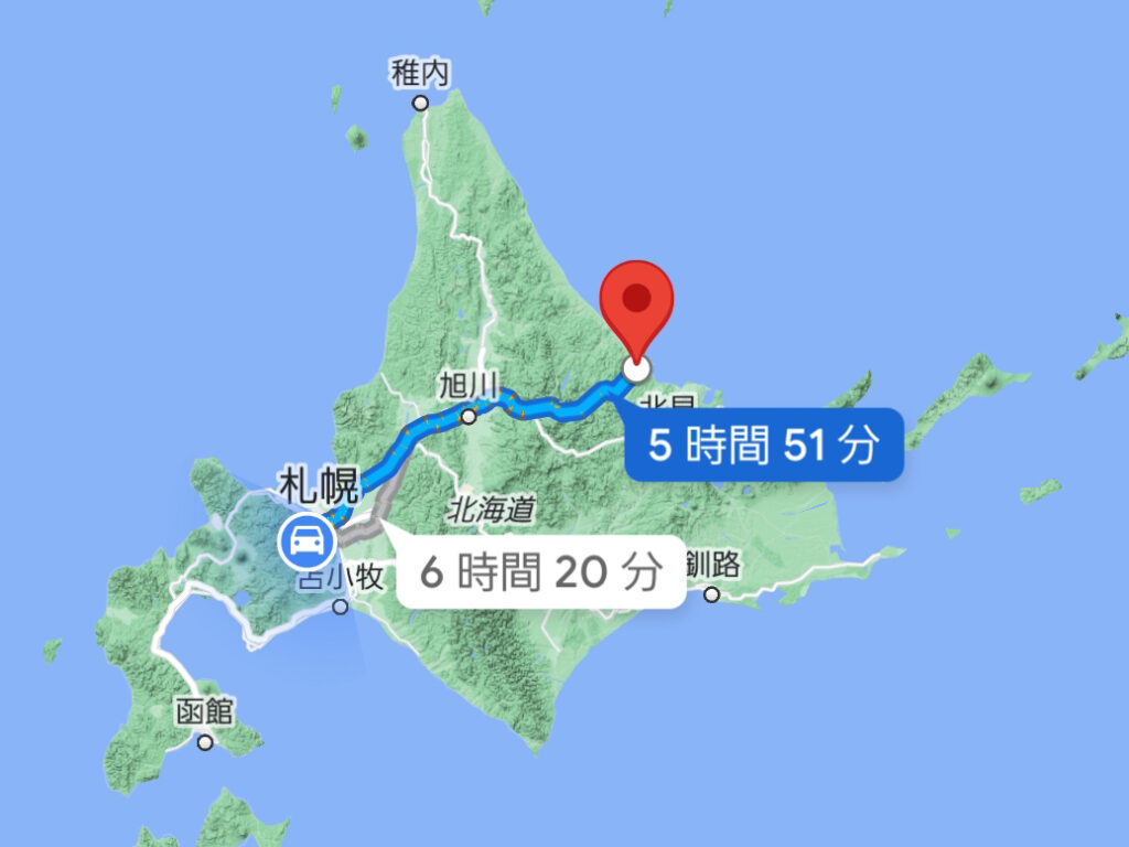 車でノンストップ走行して5時間51分。