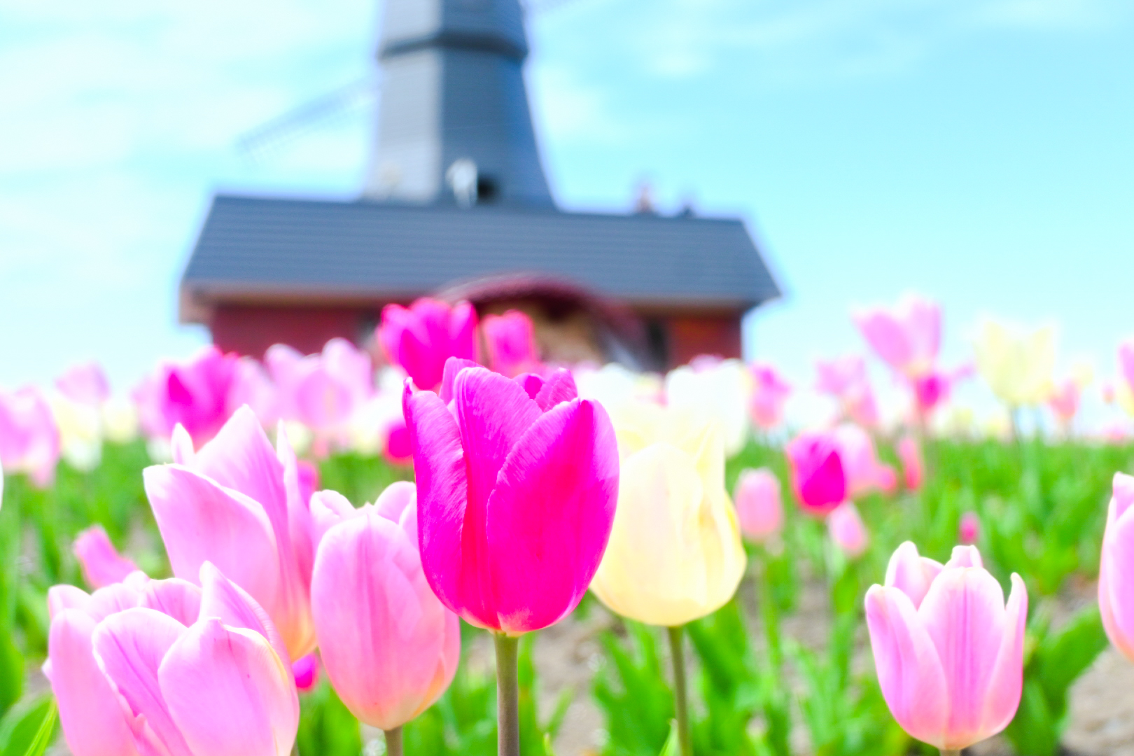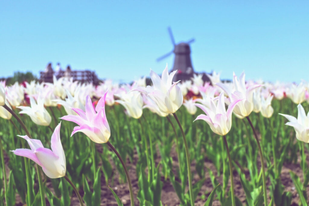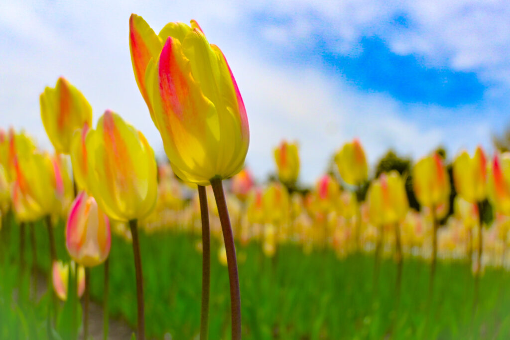 • どこをみてもチューリップが映える景色