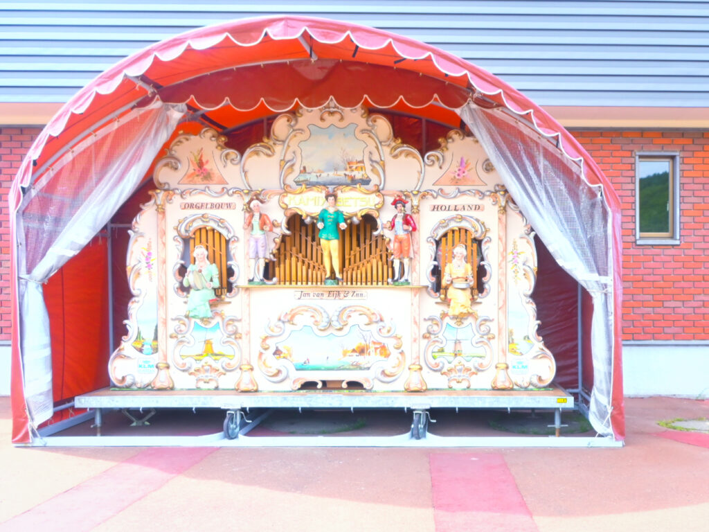風車の裏にオランダ直輸入のストリートオルガン。