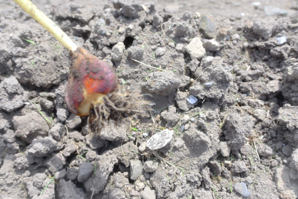 • 専用のヘラを使って好きなチューリップの球根を掘る