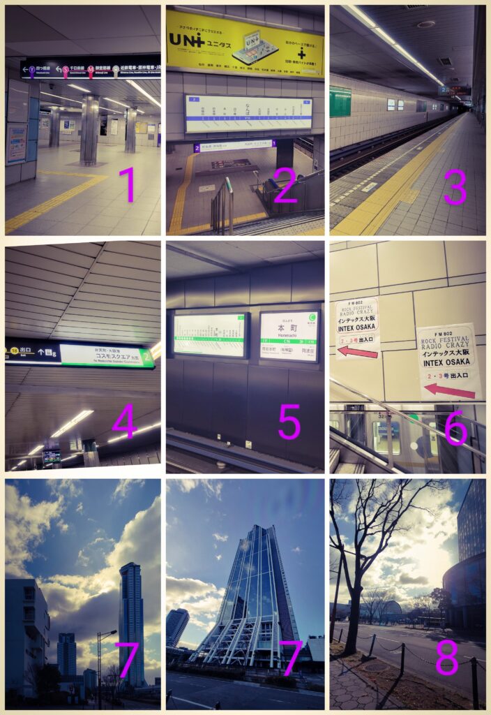 1.ホテルを出発。四つ橋線の駅を目指して歩く。 |